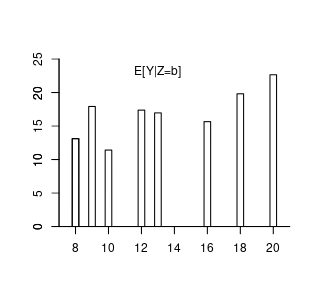- The conditional expectation given a specific value b is: m(\boldsymbol b) = E[Y | \boldsymbol Z=\boldsymbol b], which is deterministic.