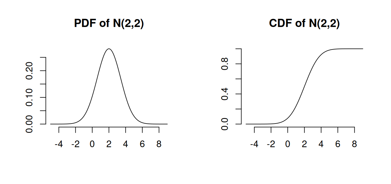 Standardizing: If Z \sim \mathcal N(\mu, \sigma^2), then \frac{Z-\mu}{\sigma} \sim \mathcal N(0,1), and the CDF of Z is \Phi((Z-\mu)/\sigma).