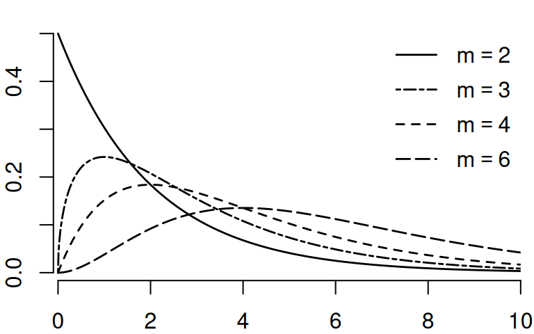 - Variance: Var(Y) = \frac{m}{m-2} if m \geq 3